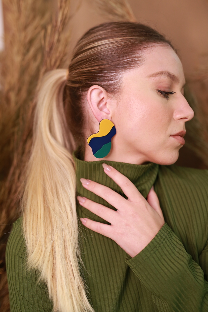 Brinco feito em acrilico 2mm e pino em aço cirúrgico. Todos os nossos produtos são cortados e finalizados a mão em processos 100% artesanais. O acrilico é um material termoplástico rigido. Cada peça é única e podem ocorrer pequenas variações entre o produto fotografado.