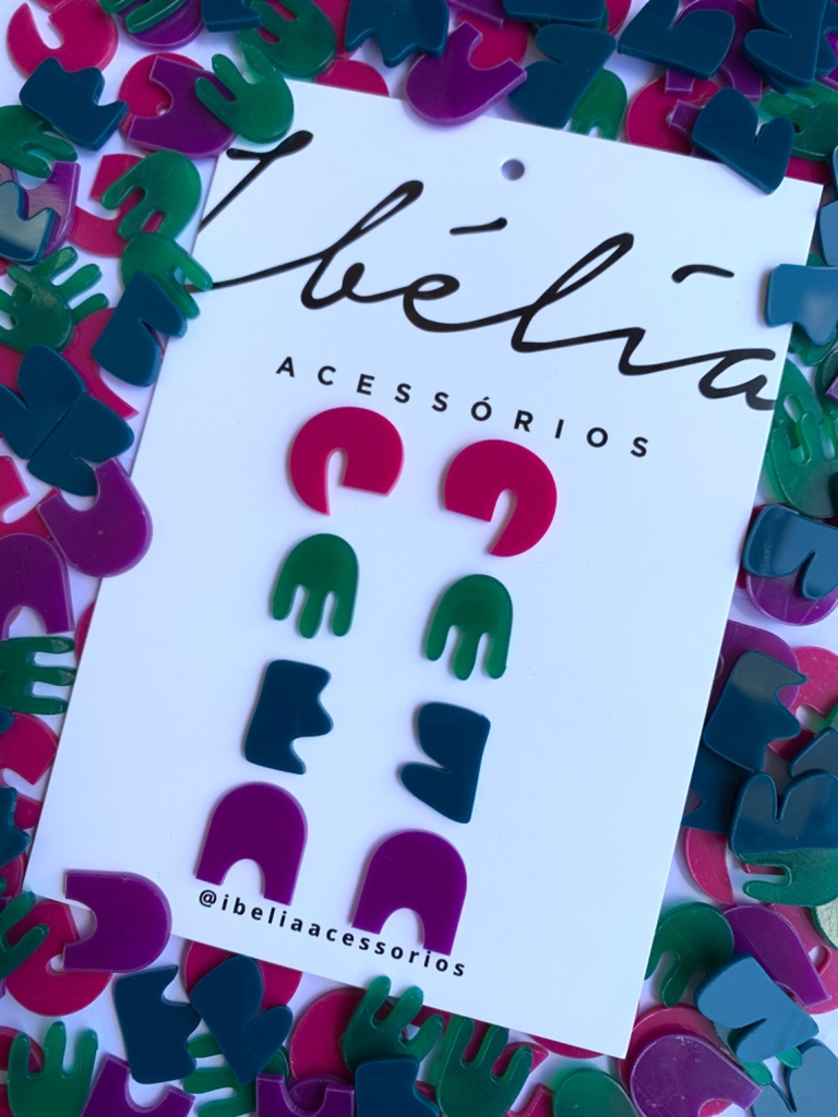 CARTELA COM 4 PARES DE BRINCO feito em acrilico 2mm e pino em aço cirúrgico. Todos os nossos produtos são cortados e finalizados a mão em processos 100% artesanais. O acrilico é um material termoplástico rigido. Cada peça é única e podem ocorrer pequenas variações entre o produto fotografado.