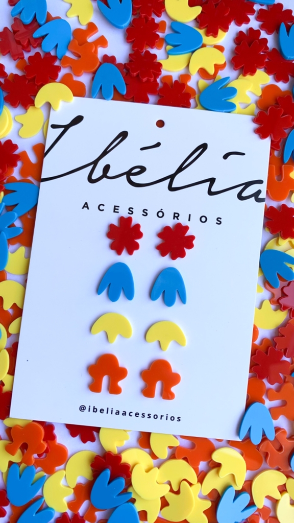 CARTELA COM 4 PARES DE BRINCO  feito em acrilico 2mm e pino em aço cirúrgico. Todos os nossos produtos são cortados e finalizados a mão em processos 100% artesanais. O acrilico é um material termoplástico rigido. Cada peça é única e podem ocorrer pequenas variações entre o produto fotografado.